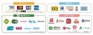 現金、クレジットカード、電子マネー、QRコード決済各種